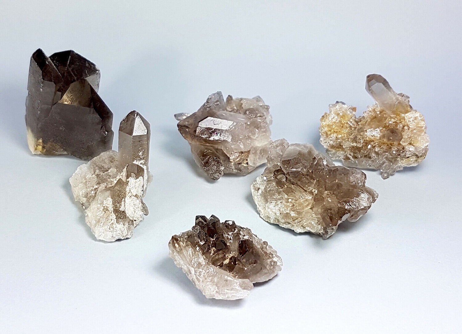 Divers minéraux pour applications ésotériques ou à collectionner, présentés dans des boîtes...
